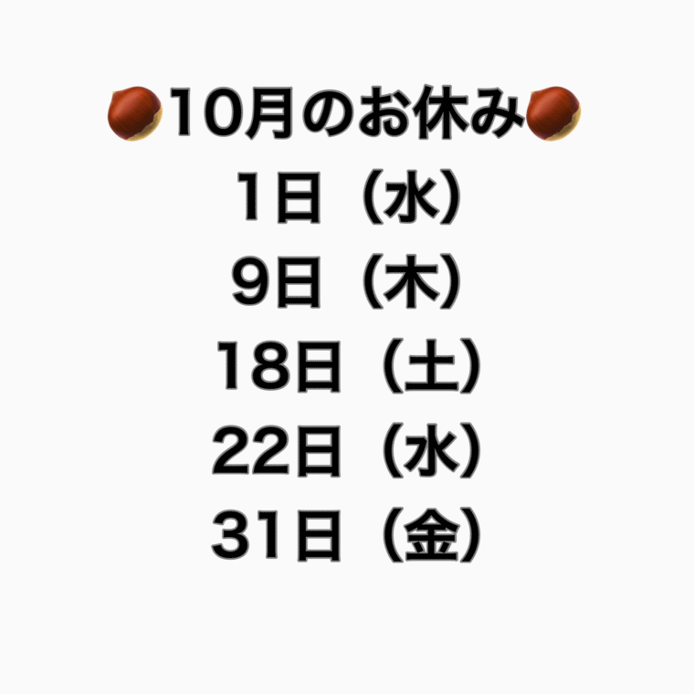 10月のお休み 2025.09.29 Post 10月のお休み 〒 577-0807 大阪府東大阪市菱屋西1-2-9 定休日:不定休(BLOG・各種SNSでお知らせいたします) 営業時間 平日:9:00~20:00 土日祝:9:00~19:00 *駐車場完備* Post Share Pin it 9月のお休み