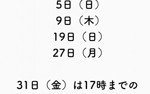 当店の定休日のお知らせや、最新情報などをお知らせいたします。